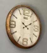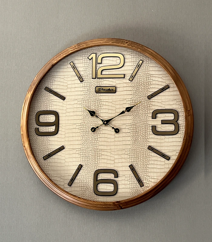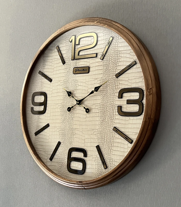 ساعت دیواری مدل لاریسا قهوه ایی کرم صفحه چرمی (چوب طبیعی روس)